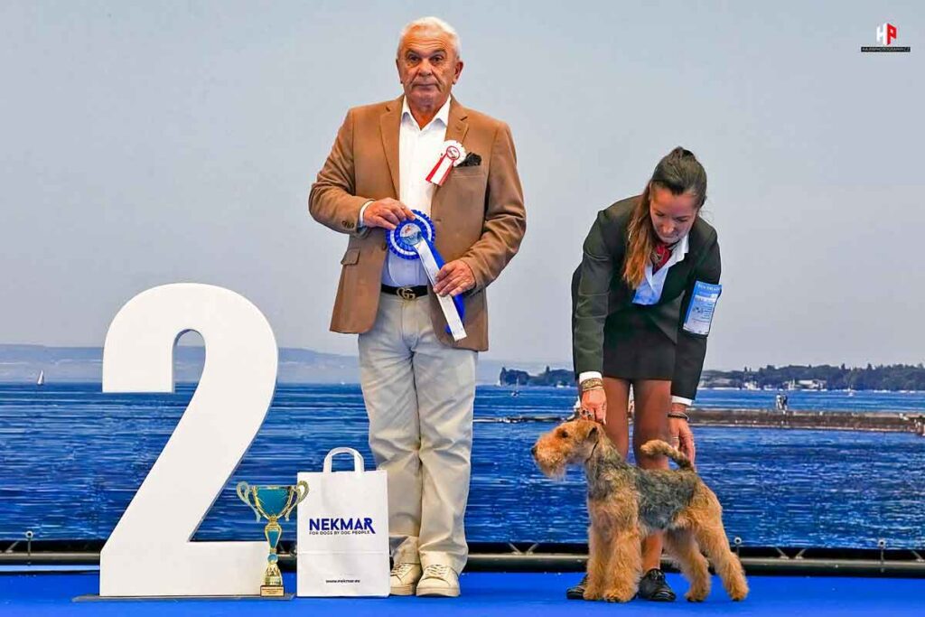 Anlässlich der CACIB-I-Ausstellung in Genf am 3. Oktober 2025 wurde die Welsh Terrier-Hündin MIRAIN O SALI DAERGI CYMRU, die unserem Mitglied Sébastien Moret gehört, vom französischen Richter Boris Chapiro zum BOB gekürt und belegte den zweiten Platz in der Gruppe 3. (Handling: Sandrine Langlais)